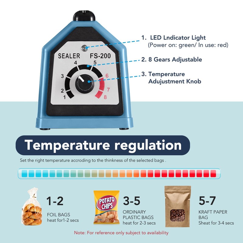 - Adjustable Temperature Setting Heat Sealer:The impulse bag sealer has a temperature adjustment dial, adjustable heat settings for the different materials bags being used.