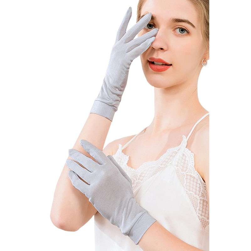 METWEY Womens 100% Mulberry Silk Gloves For Sleeping/Summer Sun Protection Short Gloves/Lightweight Silk Liner Gloves Silvery Grey