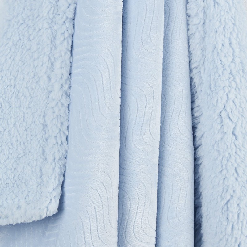 Metzuyan Baby Boy Girl Plain Blanket Soft Plain Sherpa Flannel Fleece Embossed Blue 75x100 cm
