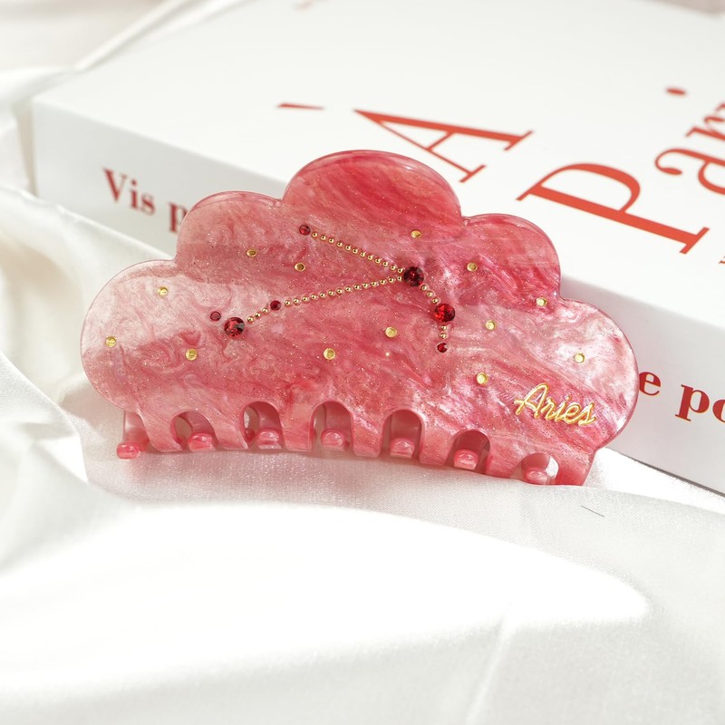 - YOUR ZODIAC, YOUR STORY: Each Zodiac Hair clip bears a constellation engraving symbolizing your unique cosmic story. Twinkling red gems mark your lucky stars, paired with playful cloud designs. Choose your sign for self-expression or gift a loved one’s zodiac charm