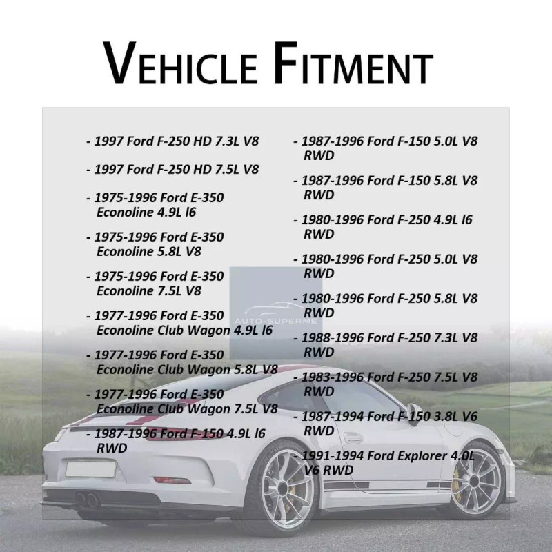 - OE/OEM Part Number: 1991 1992 1993 1994 Ford Explorer 4.0L V6, 1980 1981 1982 1983 Ford F-100 3.8L 4.2L 4.9L 5.0L V6 V8 l6, 1997 Ford F-250 HD 5.8L 7.3L 7.5L V8, Base, Sport, Limited, Ranger, Special, XLT, 4x4, XL, Lightning