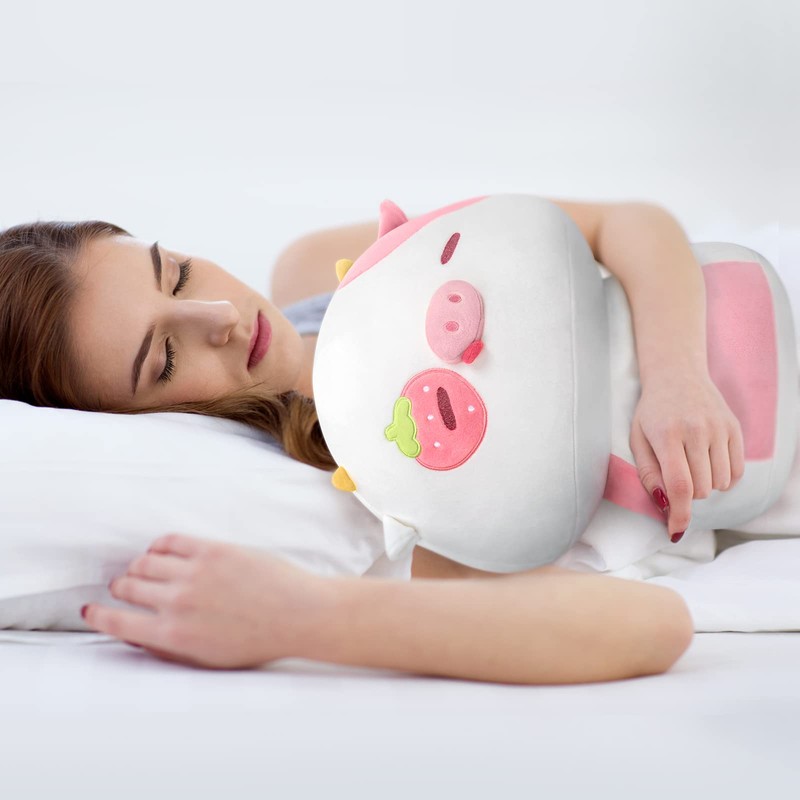 - 🍓 [Cute and Funny Design] :With its lovely and lifelike cow stuffed animal pillow, a smiling appearance, and soft fabric. All bad emotions and working pressure will disappear when you embrace stuffed toys! This soft Cow plush can accompany you or your friends.