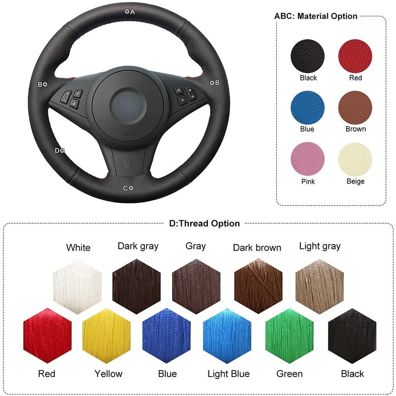 Mewant Steering Wheel Cover DIY Hand Sewing Genuine Leather Steering Wheel Cover for M5 E60 (Sedan) / E61 (Touring) / M6 E63 (Coupe) / E64 (Cabrio)