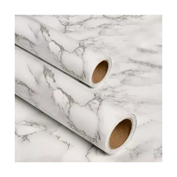 con tecnología de película opaca de alto brillo de doble capa y material de PVC espesado, es impermeable, resistente a la rotura y al desgaste. El patrón de mármol le da a su hogar un aspecto elegante y distintivo.