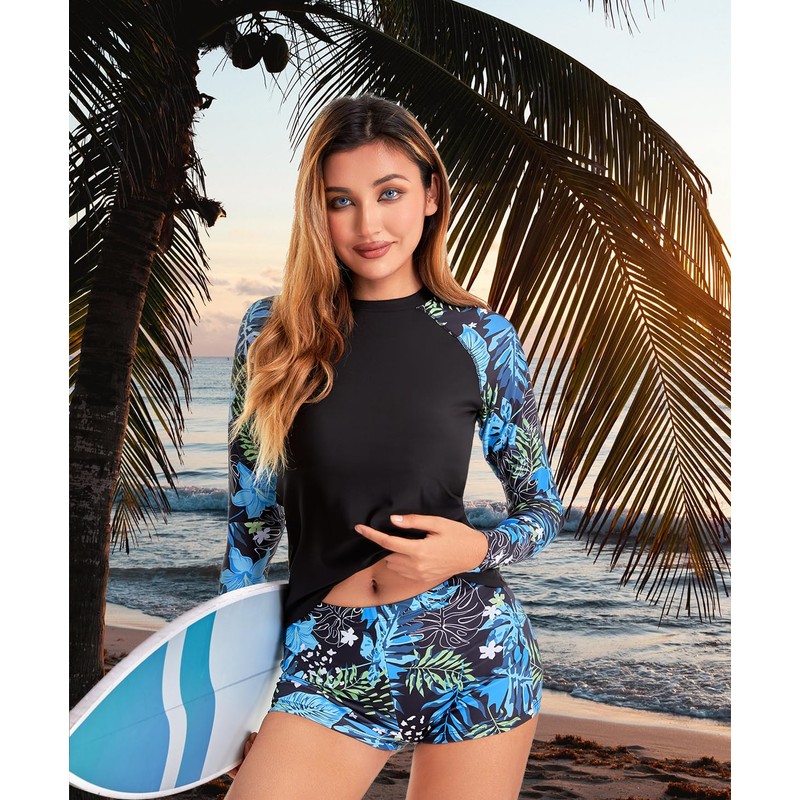 - ❤[Bathing Suit for Women]- This complete womens rash guard long sleeve comes with matching shorts, saving you the hassle of having to find the right shorts separately and making your beach holiday even more relaxing and enjoyable.From leisurely sunbathing sessions to adventurous aquatic activities, our versatile long sleeve bathing suit for women are your perfect companion for any occasion.