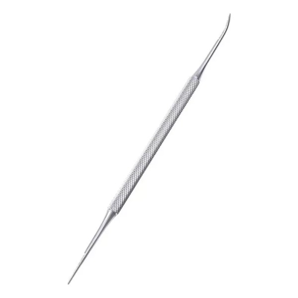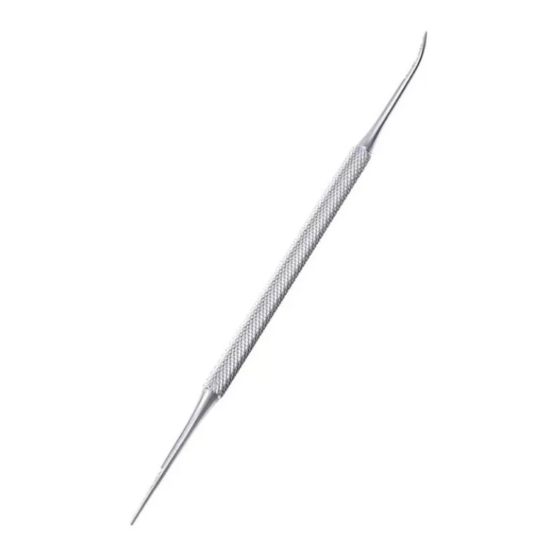 Herramienta de dos lados de acero inoxidable, los lados angulares elevan las uñas de los pies lejos de la piel y los demás ayuda en la aplicación de crema antiséptica debajo de las uñas.