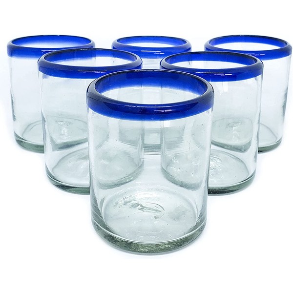 MexHandcraft Cobalt Blue Rim 10 oz Tumblers (set of 6), Recycled Glass, Lead-free, Toxin-Free (Tumbler)