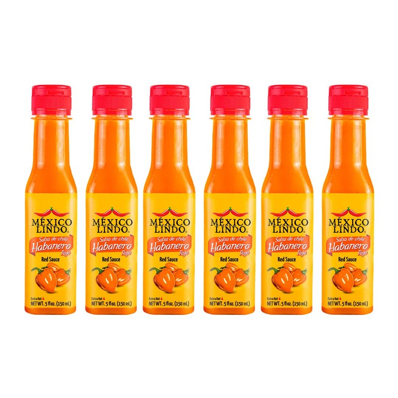 Mexico Lindo Red Habanero Hot Sauce | Real Red Habanero Chili Pepper | 78,200 Scoville Level | Enjoy with Mexican Food, Seafood & Pasta | 4.5 Fl Oz Bottle (Pack of 6)