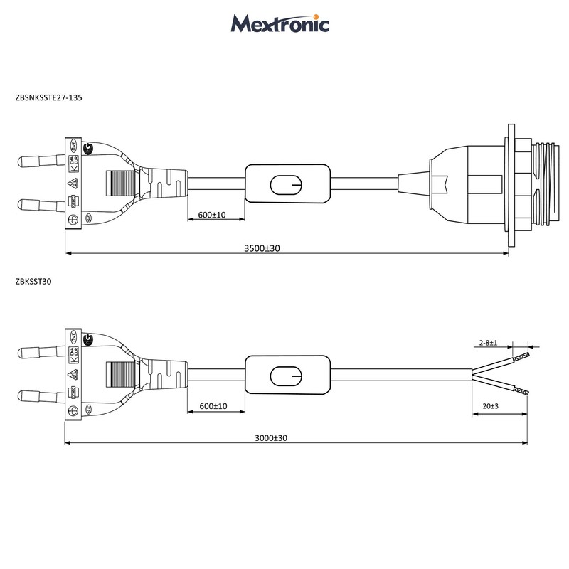 Mextronic Power Cable 3 m Euro Plug + Switch 300 SW C7 Black Open End