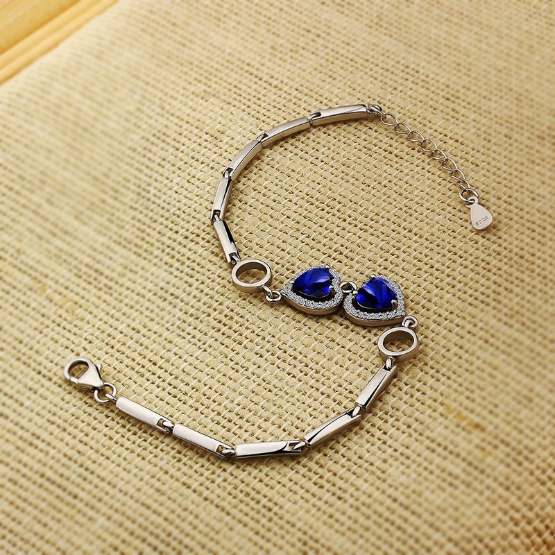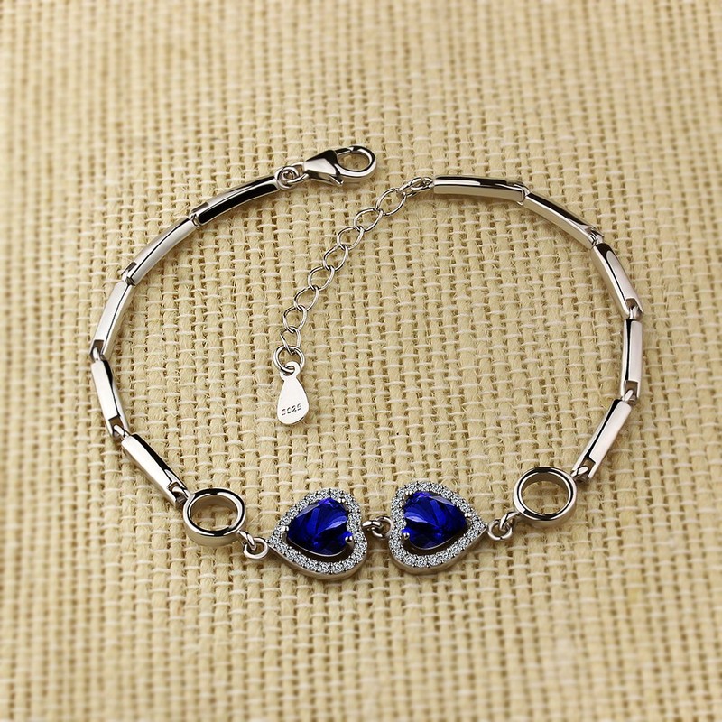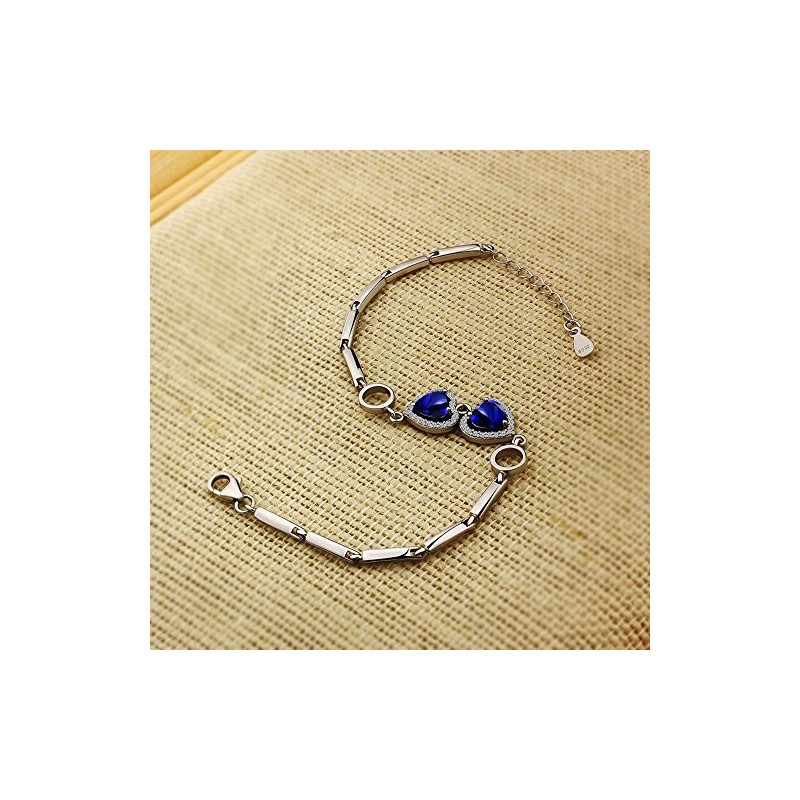 Meyiert Women Double Heart Bracelet 925 Sterling Silver Cubic Zirconia Lobster Clasp 19cm. (Blue)