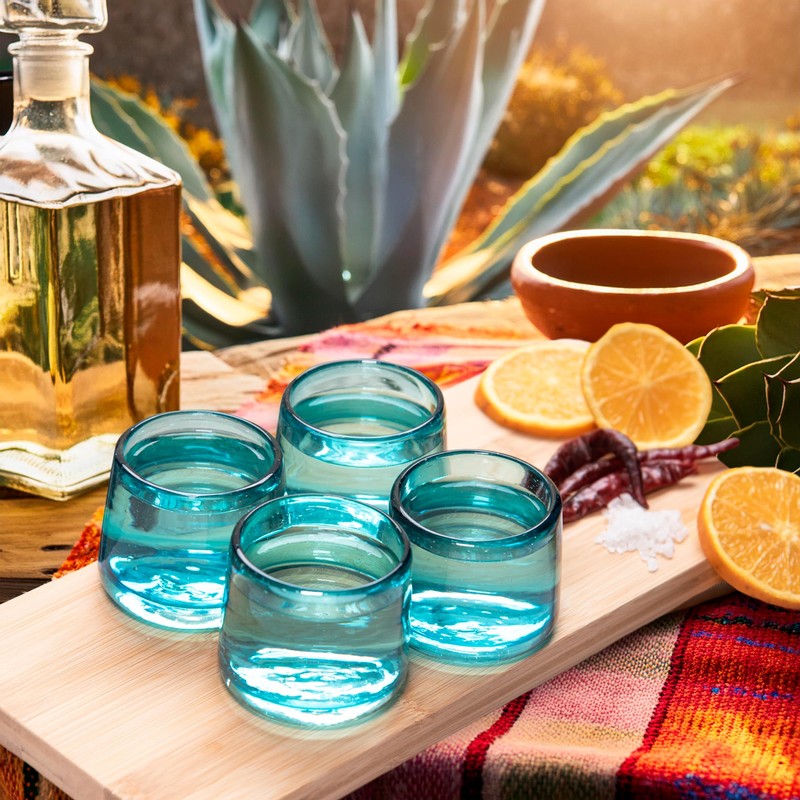 Mezcal & Tequila Sipping Glasses - Set of Four | Artisan Hand Blown Glass from Mexico | Handmade Copitas - Mezcal & Tequila Gift Set | Taste of Mexico in Every Sip