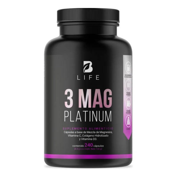 3-Mag Platinum B-Life | 240 Cápsulas | Mezcla de 3 Magnesios de Alta Absorción | Sueño, Mente y Músculos Saludables