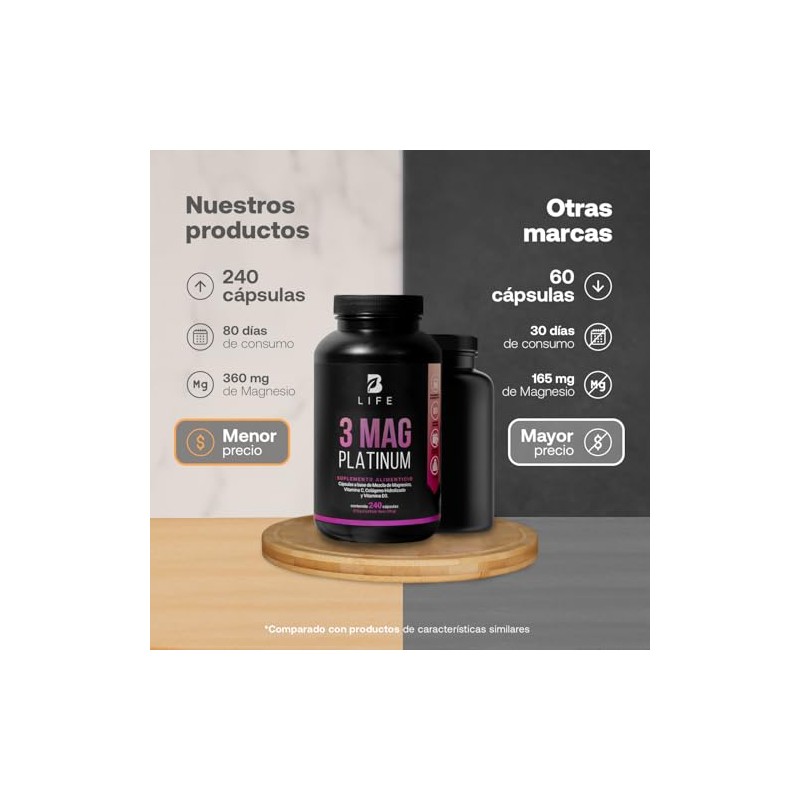 B Life Company - Mezcla de Magnesios Premium con 240 Cápsulas 1500 mg por poción. Adicionado con Colágeno Hidrolizado, Vitamina D3 y Vitamina C. 3 Mag Platinum B Life.. 🚀 Producto más vendido con miles de clientes satisfechos. Materiales de alta gama y acabados premium. 🏆 Recomendado por expertos. Ideal para quienes buscan lo mejor en calidad y estilo. Producto auténtico con satisfacción total asegurada. ¡No te quedes sin el tuyo y aprovecha esta oportunidad única!