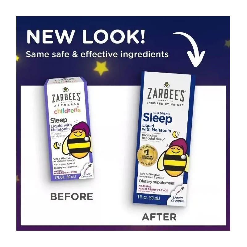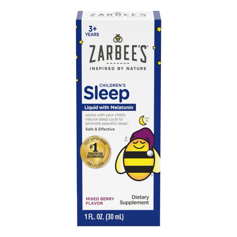 Mezcla líquida de moras Zarbees Naturals 1 mg -30 ml para niños Sleep Melatonina Liquida De 1 Mg Ayuda A La Insomnio Ocasional De Tu Hijo De 3 Años O Mas, Con Nuestro Sabroso Sabor A Bayas Naturales.