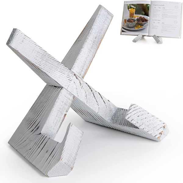 MEZOKUCEL Cookbook Stand, Handmade Wooden Cookbook Holder, Recipe Book Holder for Display Stand, Farmhouse Cook Book Stand for Cooking, Cookbook and Recipe Holder for Kitchen Counter (White(1)