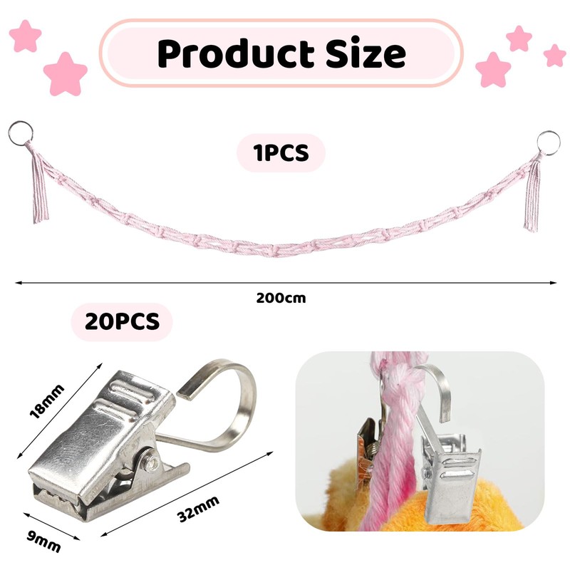 - Package includes: you will receive a pink hanging stuffed animal holder with 20 metal clips, a sufficient quantity to meet your hanging requirements. The clip is removable. You can adjust the distance between the clips depending on the size of the doll to achieve a better display effect.