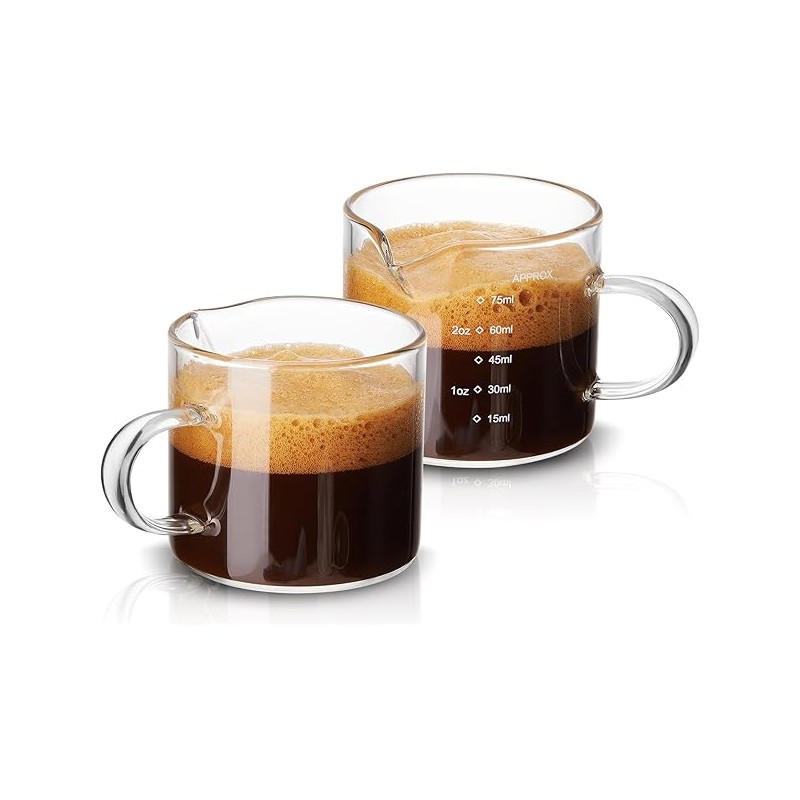 Mfacoy 2 Pack Measuring Cups, 75ML Espresso Cups with Handle, Espresso Shot G...