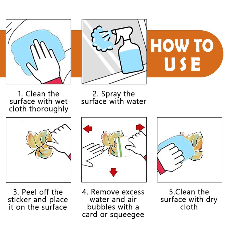 - Easy to Use: These window clings for glass windows are thin static clings, which do not require additional glue or tape. They can be easily attached to smooth and clean surfaces. Just remove the sticker and paste it on the surface of glass, window, door and mirror. Use a card to squeeze out air bubbles from top to bottom. It is also convenient to remove without leaving sticky residue and surface damage
