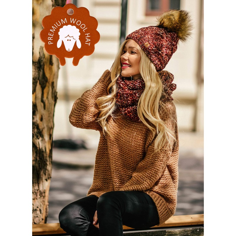 MFAZ Morefaz Ltd Set Scarf & Hat Women Winter Beanie Hat Worm Knitted Alpaca Wool Hats Fleece Lining Pom Pom (Set Hat&Scarf Green Stone)
