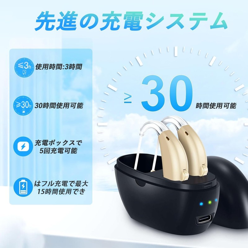 - 【充電可能】充電可能な充電ボックスとUSB充電ケーブルが付いており、3時間の充電で3 0時間使用できます。集音器充電ボックスは2-5回充電でき、1回の充電で10-15時間の連続作業をサポートし、電池交換の手間を軽減します。