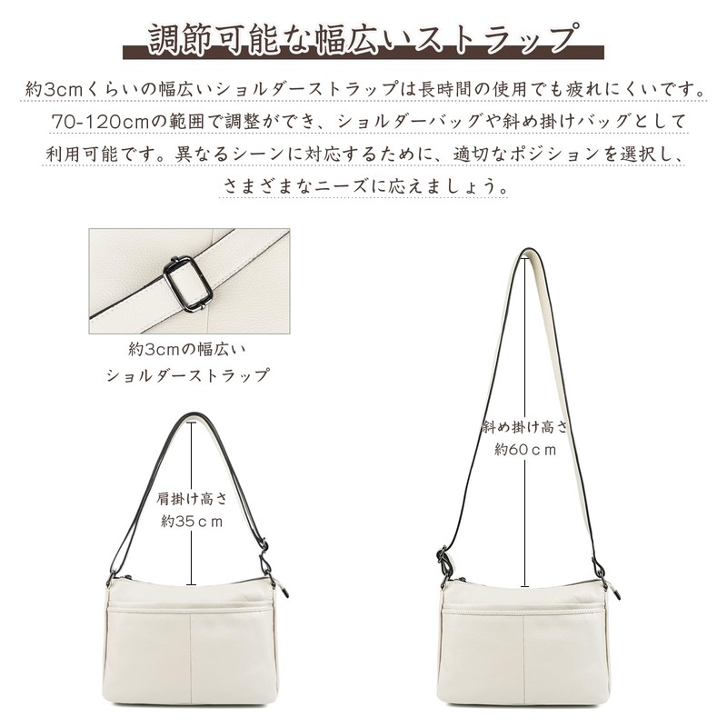 MFFOR Women's Shoulder Bag, Genuine Leather, Crossbody Bag, Many Pockets, Large Capacity, Soft, Lightweight, Cross-body Wear, Casual, Commuting, Simple, Stylish, beige