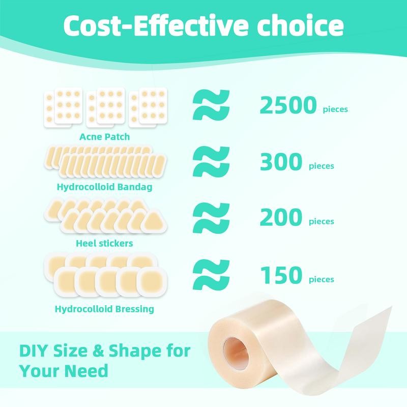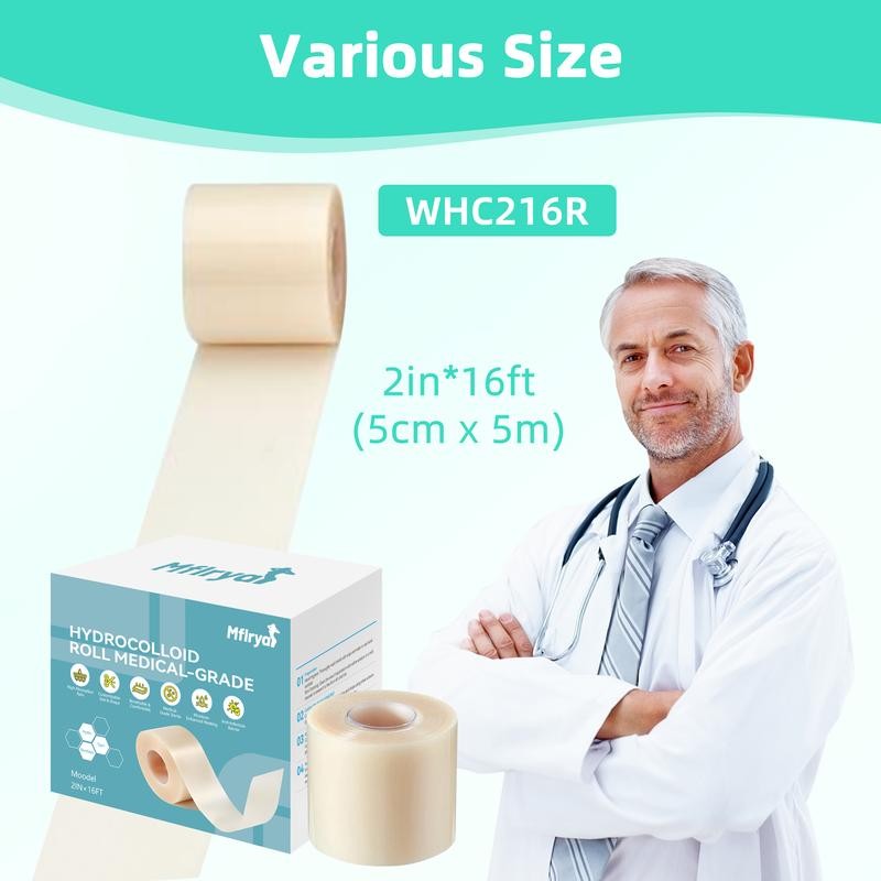 MFLRYA Hydrocolloid Roll for Wound Care - Cut-to-Size, Extra Large Hydrocolloid Patch Bandages with Self-Adhesive, Ultra Absorbent, Flexible & Waterproof, First Aid Kit Essential (2in*16ft, 19.7mil/ 0.5mm Thickness) Healthcare acne pimple patch bandaids