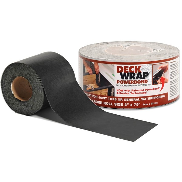 Powerbond deckwrap is a flexible polyethylene waterproof flashing with a super grip rubberized asphalt self-sticking adhesive. Use to block moisture from damaging posts, apply to post at grade allowing at least 1" Above grade, deck joists and Ledger boards. Prevents wood rot and decay caused by water accumulating under the deck boards and extends the life of the deck. Can be applied with temperatures of 35 F (Fahrenheit) and above. Can be used as a corrosion barrier between ACQ, ca-b, or acza treated lumber and metal surfaces. Easily installs by cutting to desired length, center over joist, remove paper and firmly press into place. This product re-seals around decking screws insure waterproofing. Thickness: 25 mm. The product is manufactured in United States.
