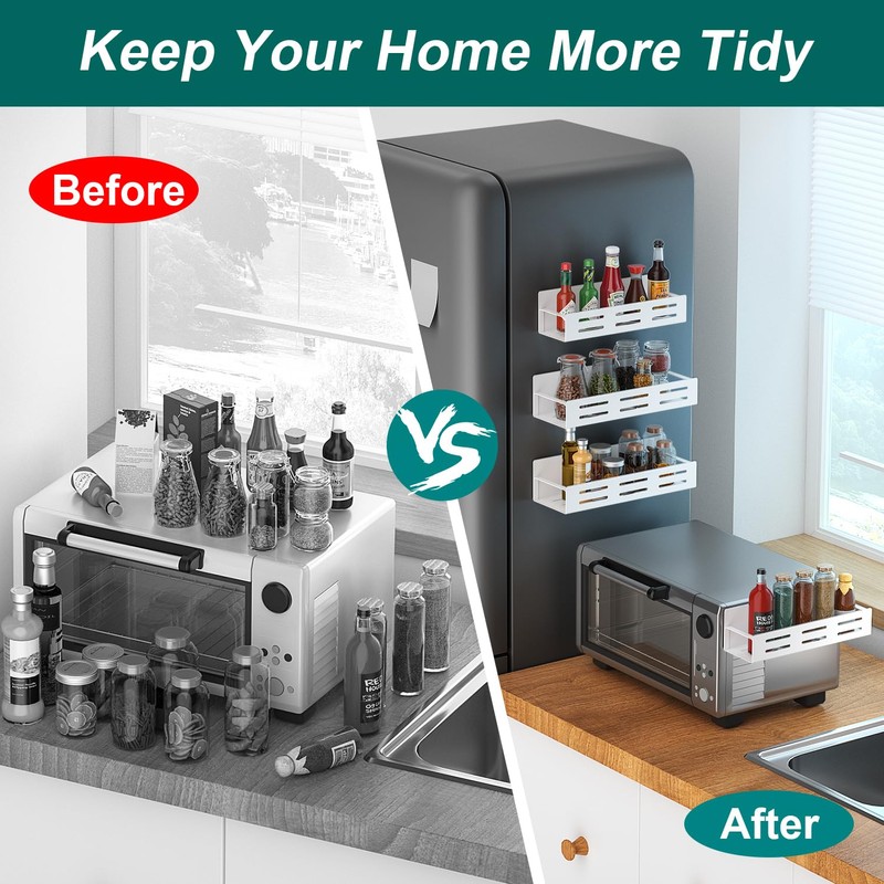- 【100% SATISFACTION】: These Magnetic Shelves is the perfect housewarming gift. With the help of spice rack organizer, keeps your seasonings and herbs in order, you could save more space for your kitchen. If you have any problems, please feel free to contact us. Whether or not to buy the spice rack, we will solve it for you.