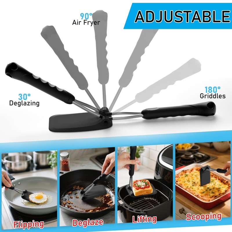 - 【Adjustable Angle Spatula】Our spatulas feature multiple adjustable angles for comfortable use with griddles, shallow/deep pans, and air fryers. Works great for flipping, stirring, chopping, and serving. It has a wide application and is multipurpose.