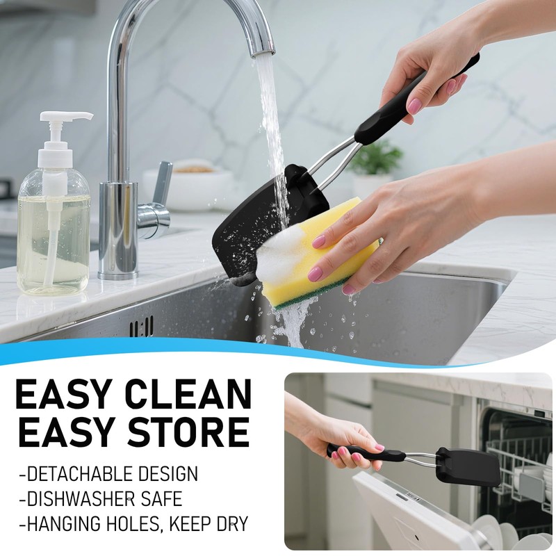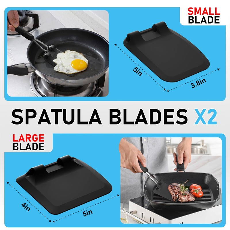 - 【Silicone Spatula Turner Set of 2】Our silicone spatula set came with 2 swappable spatula heads and 1 handle. Made of food-grade silicone, the soft silicone spatula head will not scratch non-stick pots. Perfect for flipping eggs, pancakes, fish, and burgers