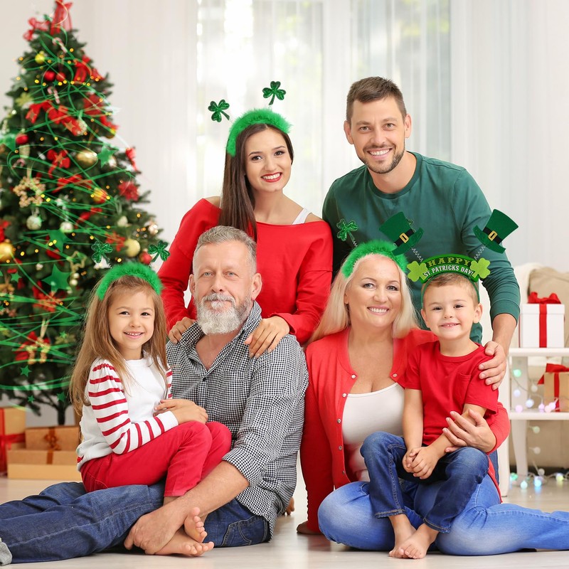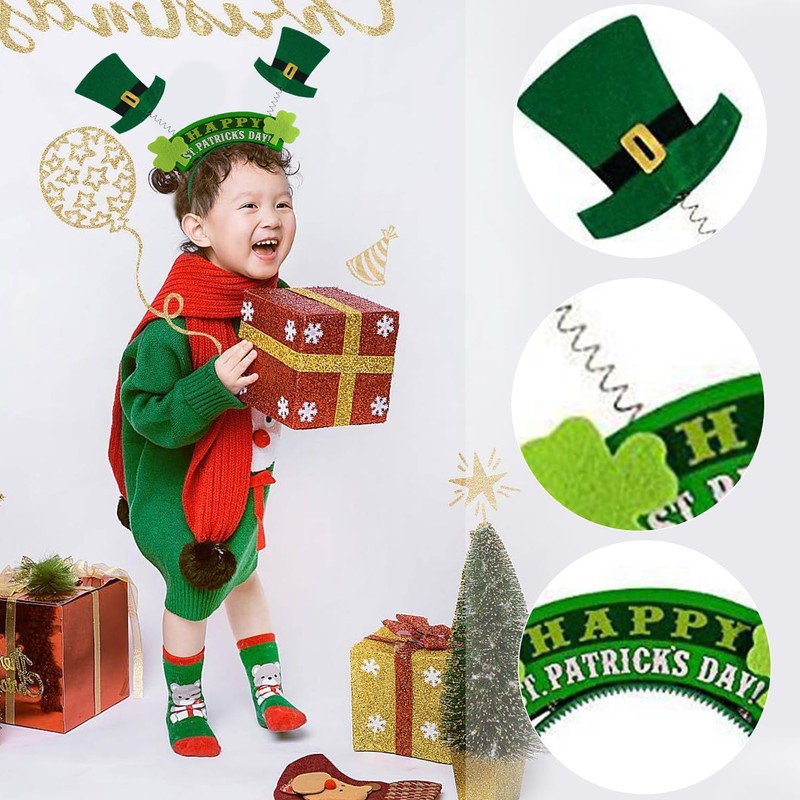 MFUOE 2pcs St Patricks Day Headbands Green Shamrock Head Hat Toppers with Laser Clover Hair Hoop for St Patrick's Day Costume.