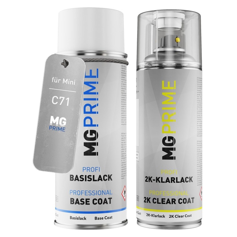 MG PRIME Autolack 2K Spraydosen Set für Mini C71 Smokey Green Xir. Basislack 2 Komponenten Klarlack Sprühdose