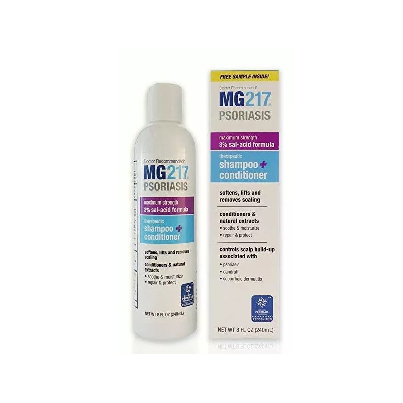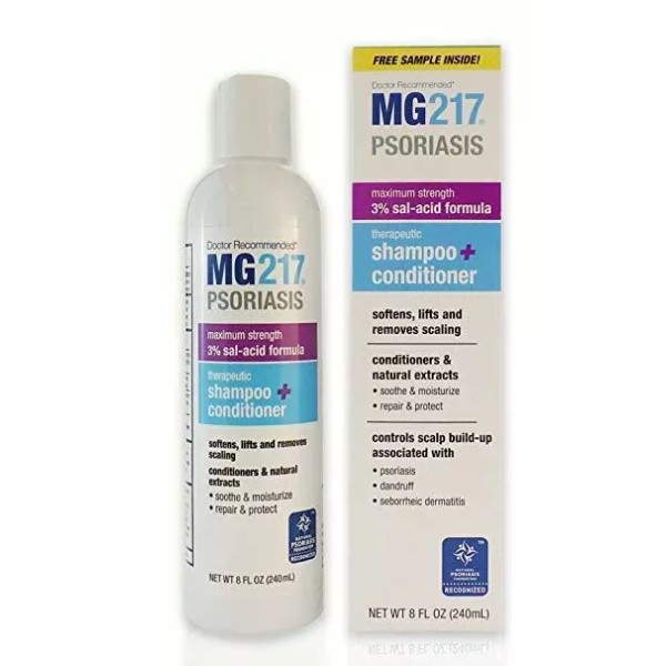 3% Sal-Ácido champú y acondicionador suaviza, ascensores y elimina el escalamiento y la acumulación en el cuero cabelludo; Para el alivio temporal de estos síntomas asociados con la psoriasis, dermatitis seborreica o caspa - picor, descamación, descamación, enrojecimiento e irritación del cuero cabelludo; Acondicionadores y extractos naturales calmar, hidratar, reparar y proteger el cuero cabelludo; Prepara el cuero cabelludo para una respuesta óptima a otros tratamientos; Reconocida por la Fundación Nacional de Psoriasis MG217 Psoriasis 3% Ácido Salicílico champú y acondicionador - un Psoriasis, dermatitis seborreica y tratamiento de la caspa, de 8 onzas Todos nuestros productos estan en inglés SKU 4091926910