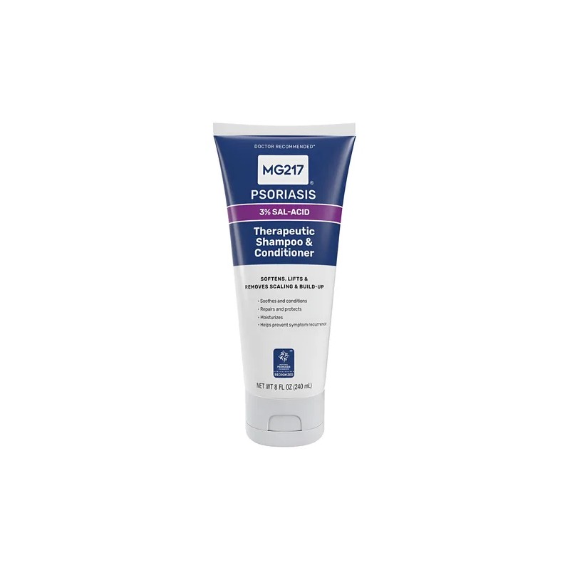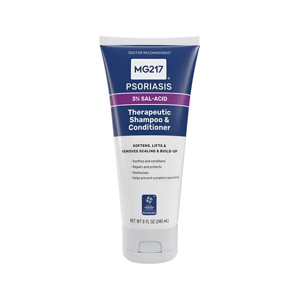 • Champú y acondicionador MG217 Psoriasis con ácido salicílico al 3% para tratar la caspa y el cuero cabelludo con picazón.