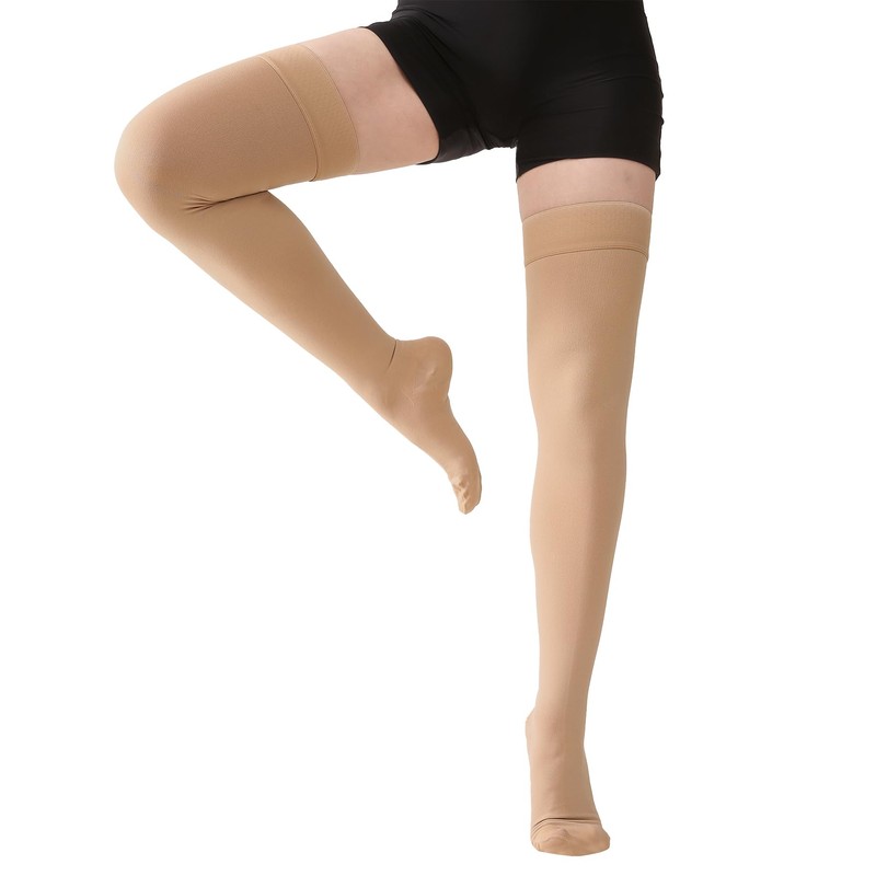 - High Quality and Comfort: Beyond therapeutic functionality, these thigh compression stockings redefine comfort in apparel. Our Tri-Weave technology combines nylon, spandex, and microfiber in a breathable matrix. It provides even compression without tightness. Silicone dot lining prevents rolling and slipping, helping to keep socks in place. They are certified grade, latex-free, and soft. The roomy, closed-toe box does not compress toes, eliminating pressure and chafing.