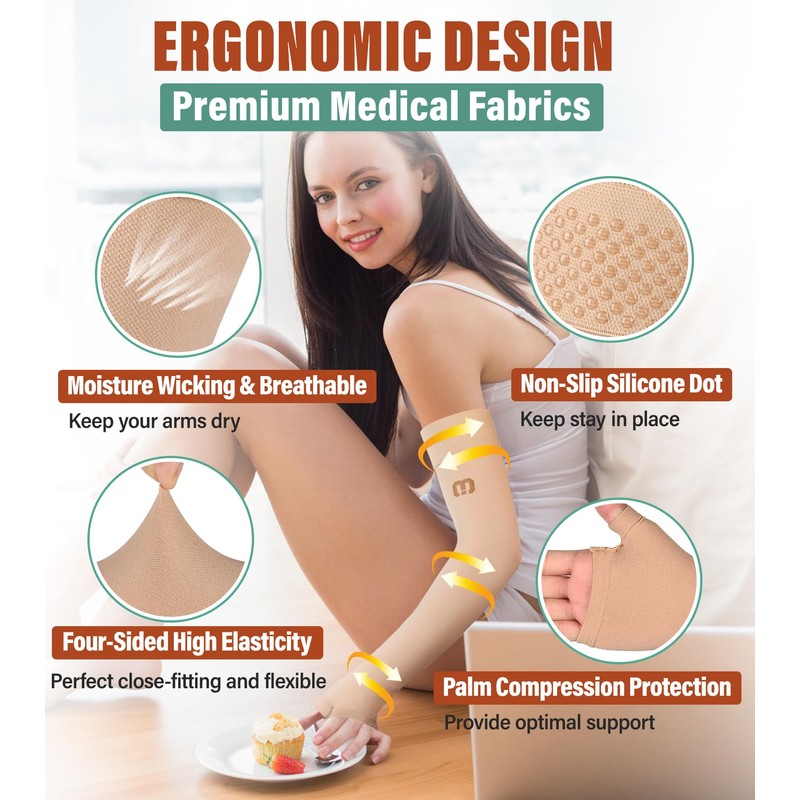 - ✅【Terapia y prevención eficientes:】Esta manga de compresión de muñeca, pulgar y codo y brazo está diseñada para controlar la hinchazón de la circuncisión del cáncer de mama, quemaduras por radioterapia, trastorno de salida linfática; brinda soporte de muñeca, pulgar y palma y brazo; ideal para usar después de la cirugía y después de lesiones, tratar casos agudos y crónicos de trombosis de vena brazo de hombro y brazo de hombro y postoperación. & post-tratratratratraedema umático; reduce eficazmente el linfedema primario y secundario del brazo que no causa presión ni molestias.