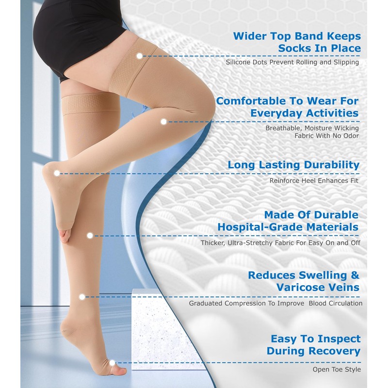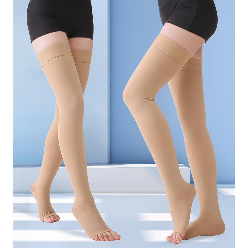 MGANG Medical Thigh High Compression Stockings for Men & Women, Pair, Open Toe, 20-30 mmHg Graduated Compression Support Hose, Opaque, Best for Varicose Veins, Edema, Flight, DVT, Swelling, Beige S