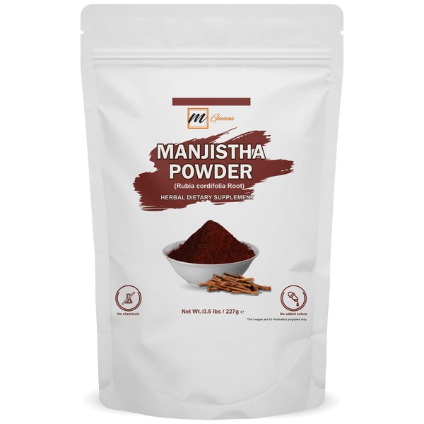 mGanna 100% Natural Manjistha/Madder Root Powder/Rubia Cordifolia 227 GMS / 0.5 LBS for Smooth Hair, Glowing Skin & Health Care