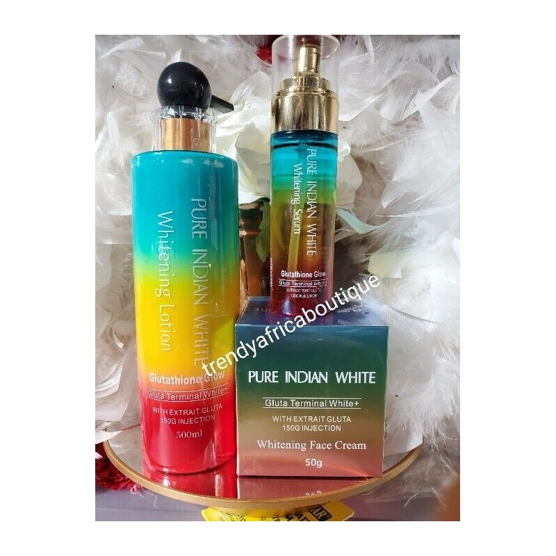 Pure indian white set. In 3 pcs of whitening body mill, serum and face cream