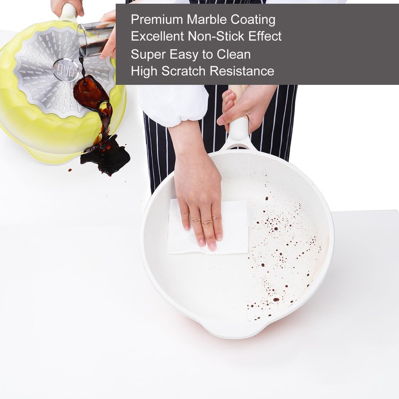 - 【Healthy Nonstick】:Our non stick pans features a premium Marble coating,effectively preventing the food from sticking and healthier cooking minimizes oil use,100% PFOA&PFAS free.