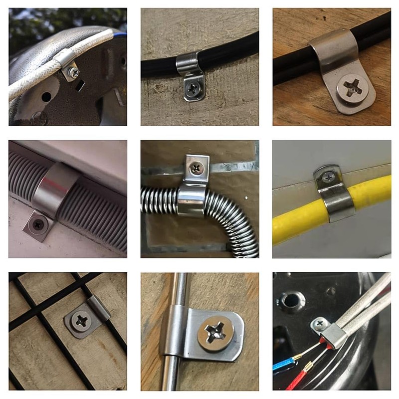 - 🌍Wide Application: Handy little clamp brackets can be used to secure cables, hoses, steel pipes, pipes, fuel lines, etc. Pipe clamps can easily secure pipes to a variety of surfaces and support structures, making them ideal for industrial, automotive, marine, electro-hydraulic systems, and indoor and outdoor conduit fixation for oil, water, and gas media.