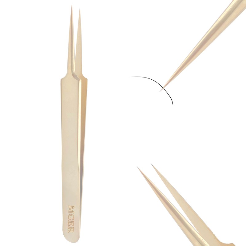 MGER Eyelash Extension Tweezers, Professional Straight eyelash tweezers for Classic Individual Volume Mink Lash Extensions, Pointed Tweezers Stainless Lash Extensions, Gold tweezers