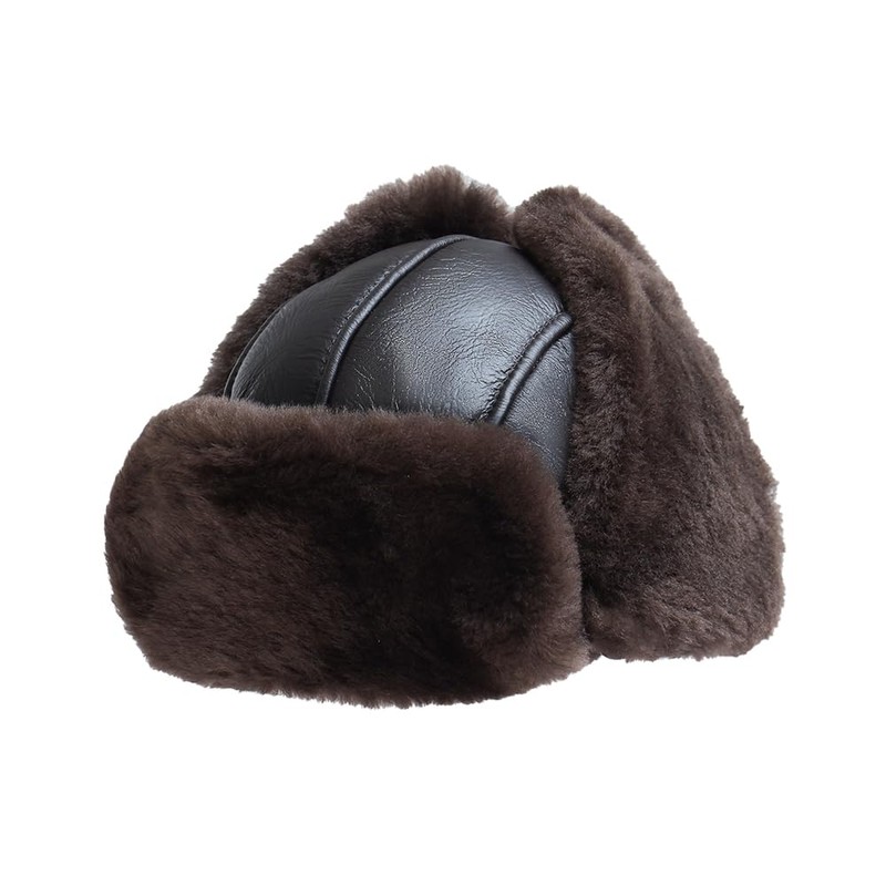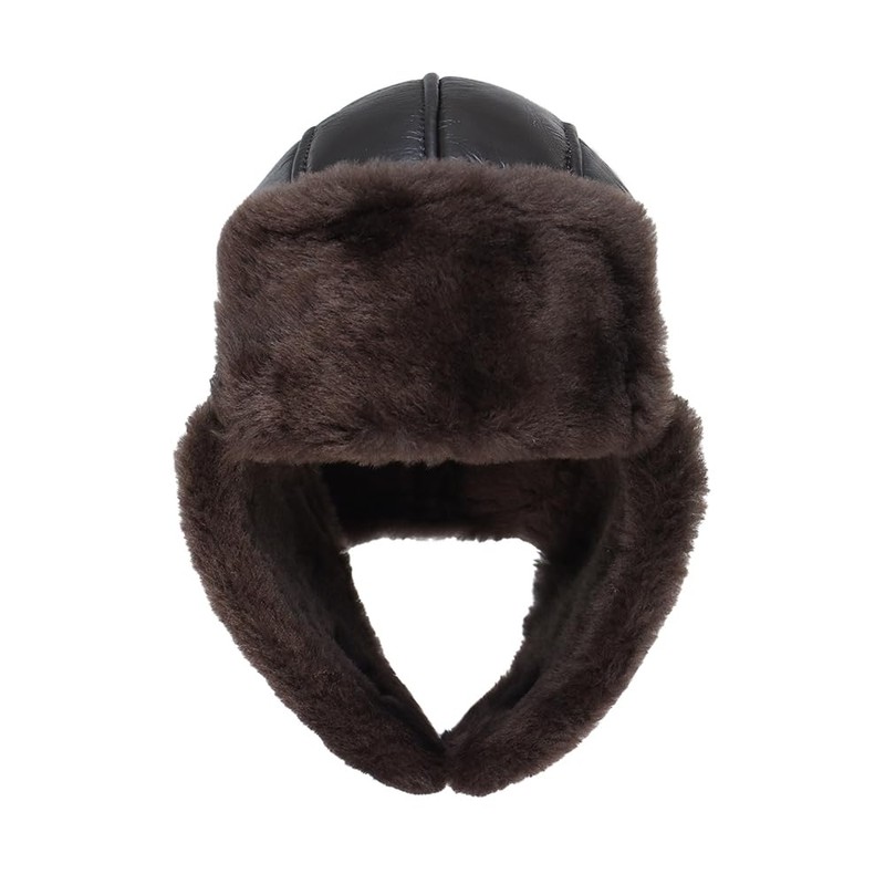 MGGMOKAY Aviator Hat Genuine Shearling Leather Aviator Cap Warm Russian hat,Brown,M