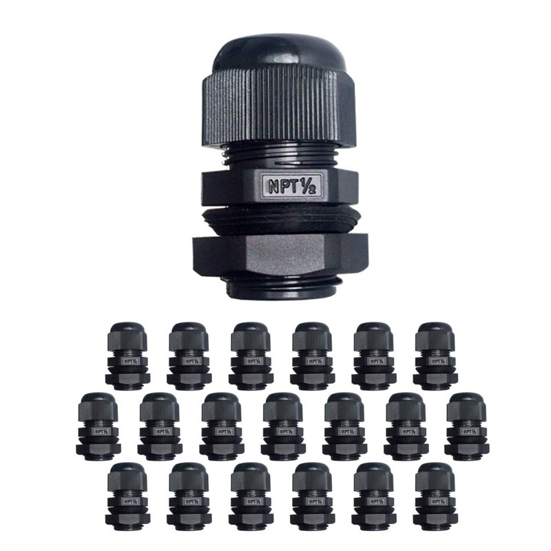 MGI SpeedWare Strain Relief NPT Nylon Cord Grip Cable Glands - 20 Pack (1/2", Black)