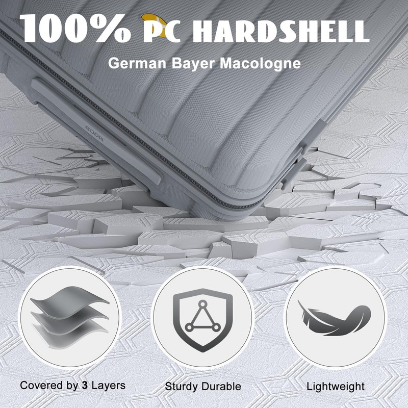 - DURABLE & LIGHTWEIGHT: Hard shell suitcases boasts 3-Layer 100% Germany BAYER PC, combining scratch-resistant, wear-resistant texture for maximum protection without compromising its lightness.