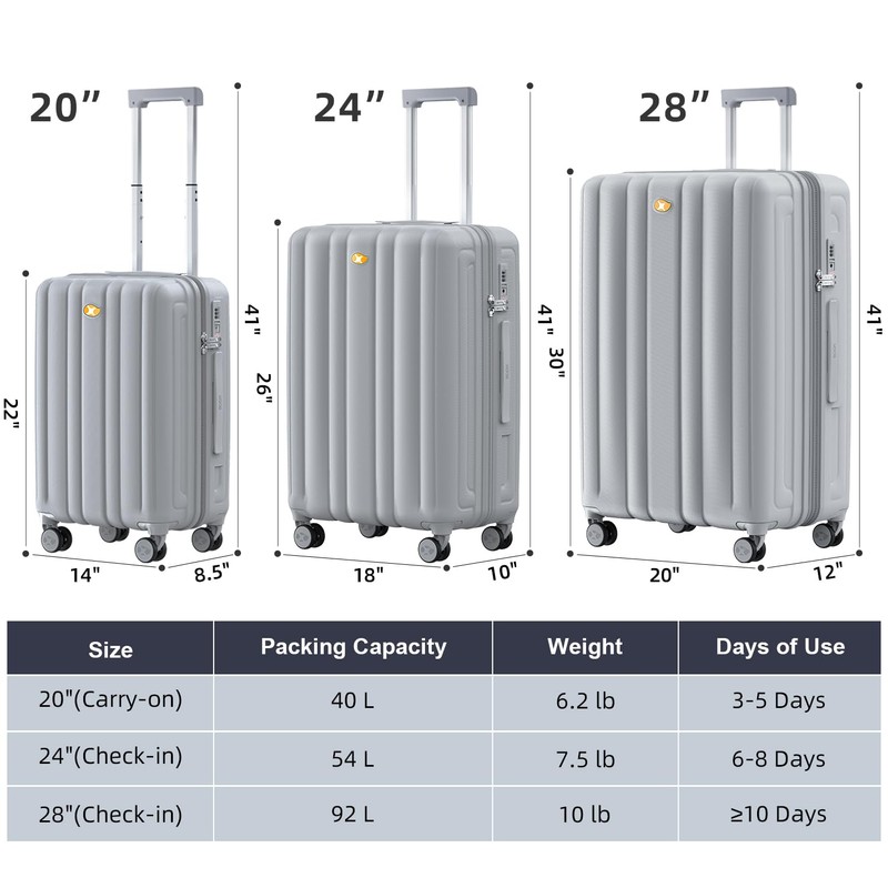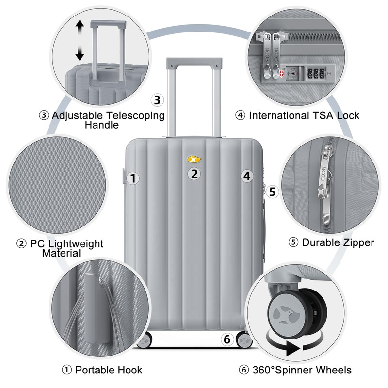 - Quality Service and Warranty: Mgob grey luggage comes with a free 3-year warranty. Our dedicated customer service team is ready to assist you within 12H if you encounter any issues with our reliable hardsided suitcase.