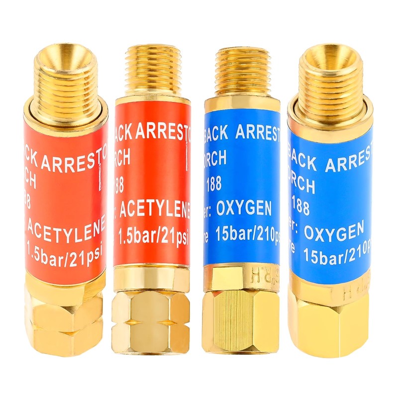- 【One-Way Flow Design】- Flashback Arrestors Set adopts a one-way valve design, allowing gas to flow only in one direction, preventing backflow and effectively preventing accidents from occurring