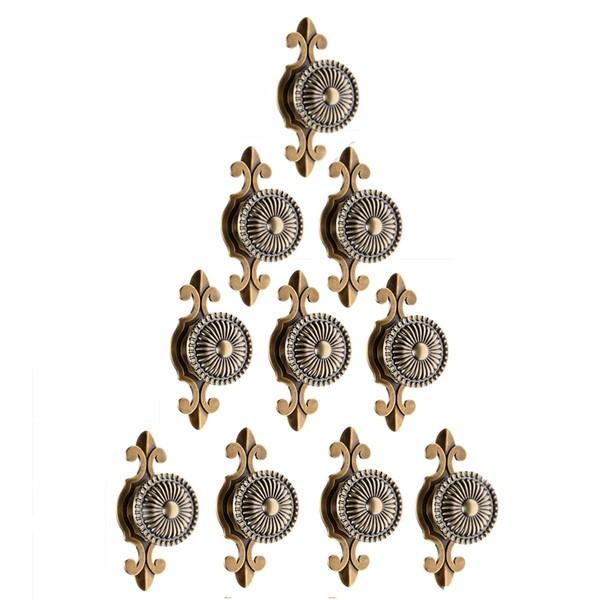 Mgoodoo Pack of 10 Pull Handles Knobs for Drawer Door Kitchen Cabinet Furniture Wardrobe Round Antique Brass