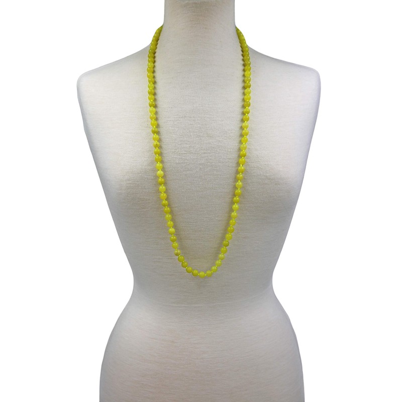 MGR MY GEMS ROCK! 36 Inch 7.50MM to 8MM Polished Genuine Lemon Jade Endless Infinity Chakra Mala Style Beaded Strand Necklace.