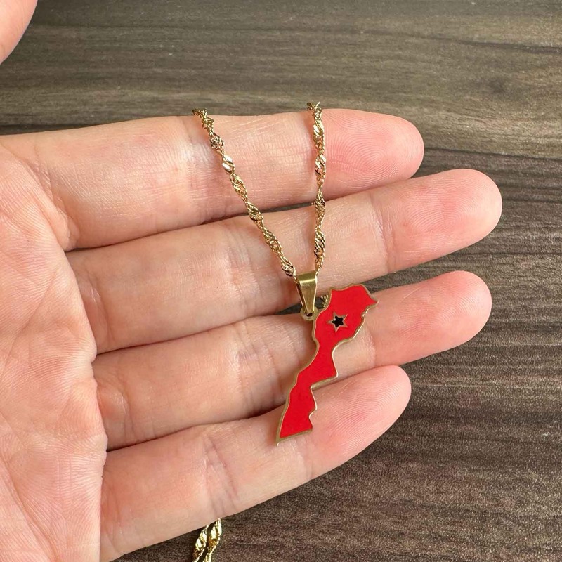 Mgutillart Fashion Stainless Steel Kingdom of Morocco Map Pendant Necklace(Gold)
